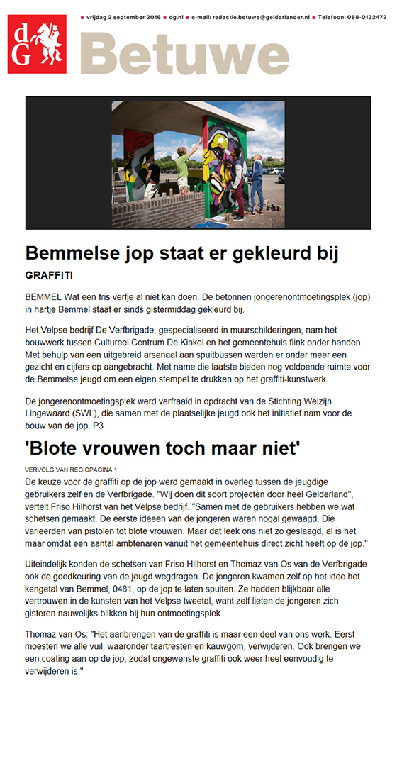 Behalve social media zijn er ook nog andere media bronnen die aandacht hebben besteed aan de Verfbrigade. Hieronder een selectie van enkele berichtgevingen in de media.
