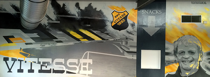 De lege wand van 12x4 meter in het supportershome van de Arnhemse voetbalclub Vitesse was toe aan een schildering die verwees naar vroegere tijden van Vitesse. Toen de club nog geen groot Gelredome had maar op Monnikenhuize de wedstijden speelde. Zo is er een ontwerp ontstaan die met diverse elementen je terug neemt in de tijd. Zo is er het portret van Bert Jacobs (oud speler en trainer) in opgenomen. Het schild van Vitesse 1892 en Vitesse zelf uitgevoerd in de typografie die op het oude clubblad altijd prominent op de cover stond. Schilderachtige elementen wisselen zich af met abstracte vormen die de karakteristieke tribune van het oude stadion weergeeft.