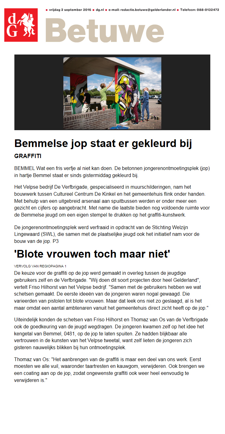 Behalve social media zijn er ook nog andere media bronnen die aandacht hebben besteed aan de Verfbrigade. Hieronder een selectie van enkele berichtgevingen in de media.